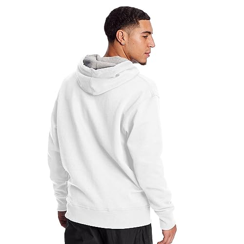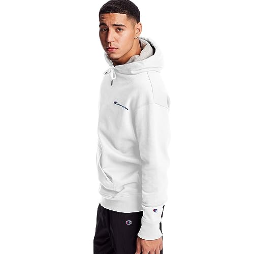 Champion Powerblend Fleece Hoodie Felpa con Cappuccio, Bianco Scritta Sinistra, M Uomo