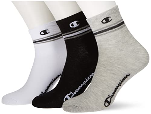 Champion Seasonal 3PP Quarter Calze, Unisex - Adulto, Bianco/Grigio (Melange Chiaro)/Nero, 43-46 EU