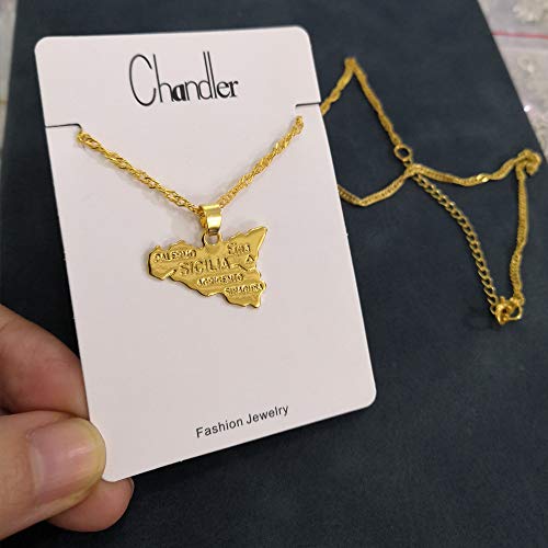 Chandler Collana con ciondolo a forma di Sicilia, alla moda, per donna, gioiello regalo