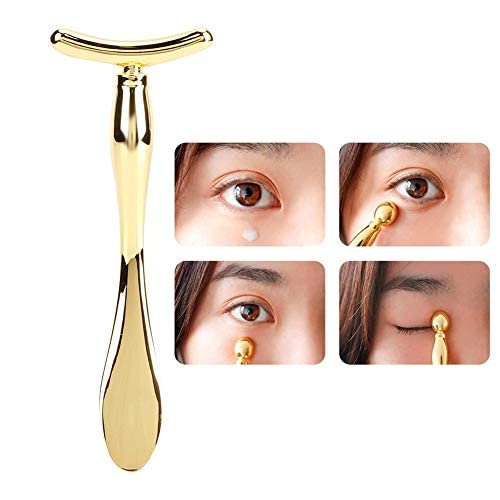 Changor Cucchiaio di Crema per Occhi in Metallo Resistente, Materiale in Lega di Zinco Texture Pelle Borse Occhio Crema per Occhi applicatore con Lega di Zinco (Oro)