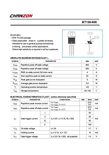 Chanzon 10 pezzi BT136-600 TO-220 Triac 4A Transistor