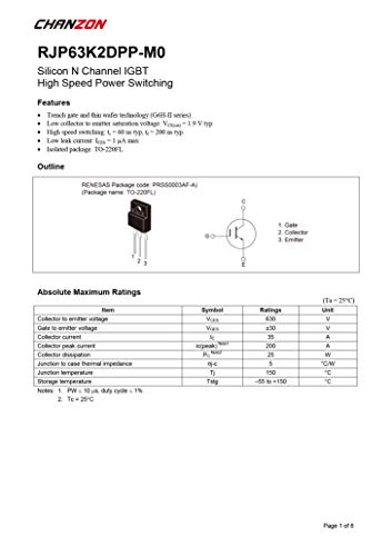Chanzon 10 pezzi RJP63K2 TO-263 IGBT NPT Trench Transistor 35A SMD