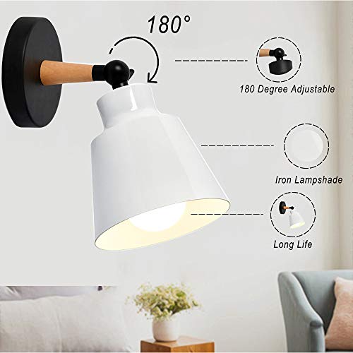 Chao Zan Lampada da Parete E27 in Metallo, Lampada da Parete Moderna in Ferro + Legno, Faretti, Lampada a LED con Paralume Bianco