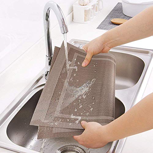 【Materiale di alta qualità】:Queste tovagliette 30cm x 45cm, le tovagliette sono perfettamente in accordo con lo standard del FDA,sono il 70% in PVC e 30% in poliestre, tessitura di alta qualità, molto resistenti, non perdono colore. Riesce a proteggere il tuo tavolo al massimo di 80°C(176℉), protegge il tuo tavolo per evitare che si scotti, per creare una piacevole atmosfera da tavola!