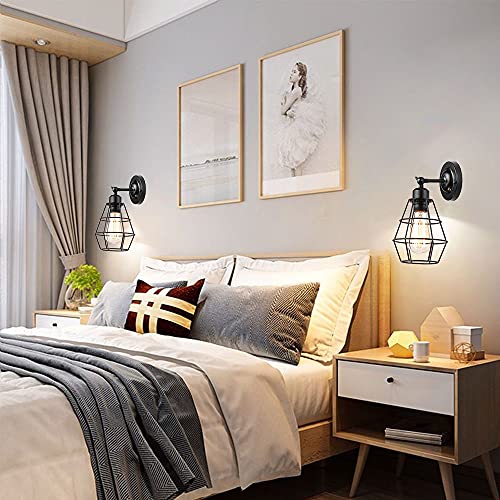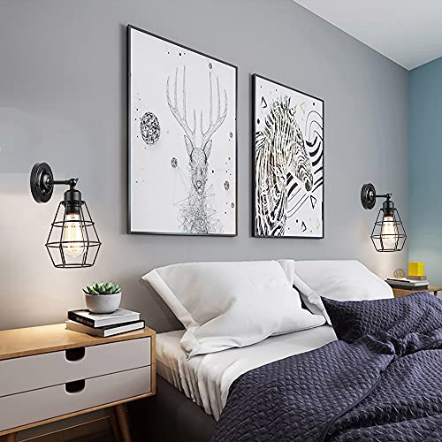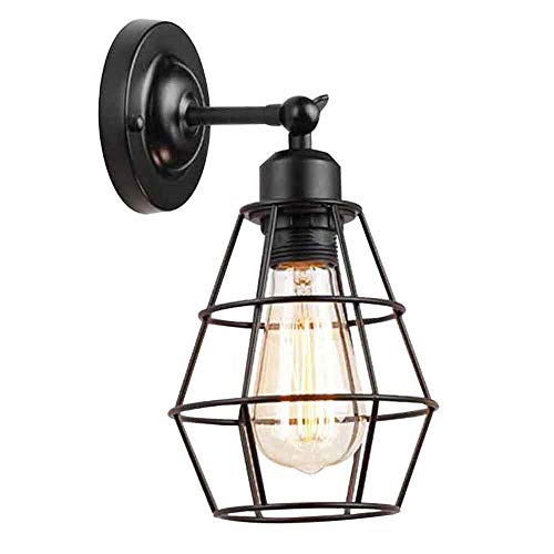 ChaoZan Applique da parete interna Edison Lampada Vintage Industriale Gabbia Lampada da Parete Ferro E27 Illuminazione a Soffitto Retro per Cucina Soggiorno Ristorante Soffitta Metallo Nero