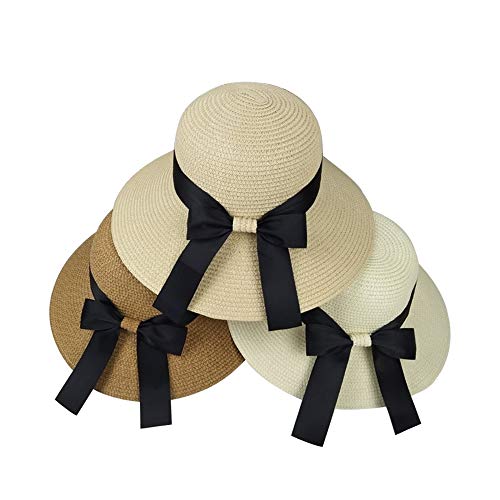 Chapter Seven - Cappello da sole da donna, pieghevole, con fiocco, protezione UV, UPF50, Bianco sporco, M