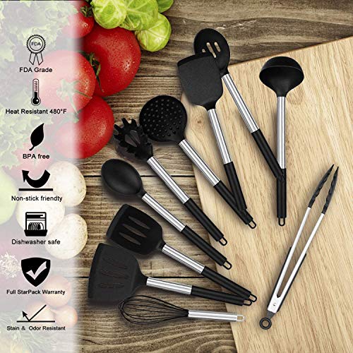 Charlemain Utensili Cucina Silicone, 34 Pezzi Set Utensili Cucina Silicone Antiaderente, Mestoli Cucina Silicone Senza BPA, Manico in Acciaio Utensili da Cucina con Supporto - Nero...