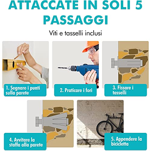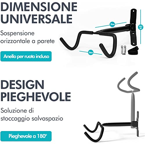✅ PRATICO APPENDI BICI: Questo portabiciclette aiuta a proteggere le gomme della tua bici e a creare ordine e spazio, grazie al suo design salvaspazio e pieghevole. È il supporto da parete per biciclette perfetto per avere il garage e la casa sempre in ordine!
