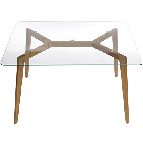 Charles Jacobs - Tavolo da Pranzo con Gambe in Rovere Massiccio e Piano Superiore in Vetro Trasparente, per 4-6 Persone, qualità Premium.