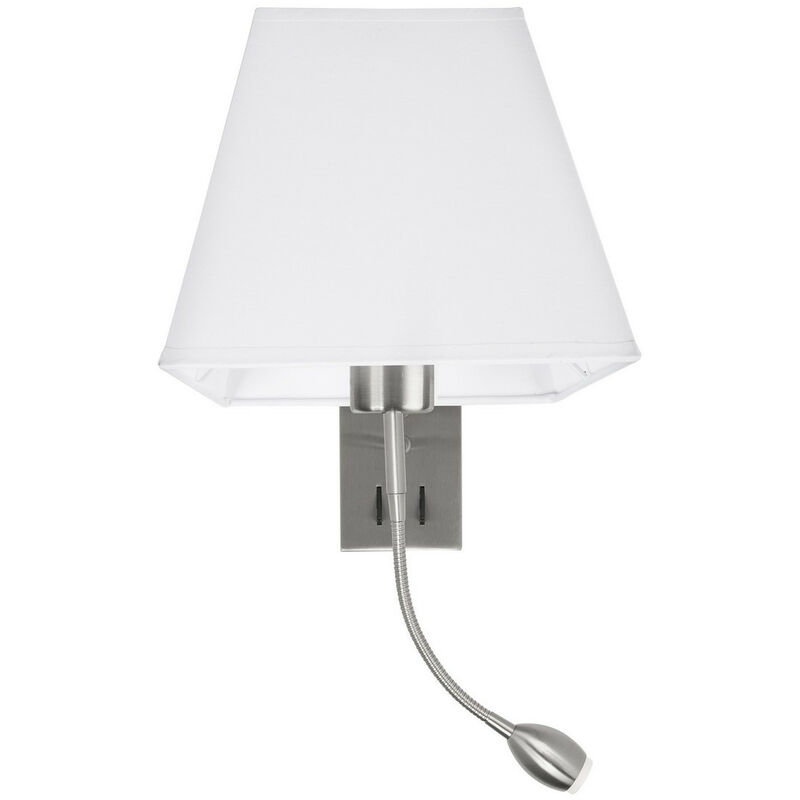 Merano Charlesbourg Lampada da Lettura Sabbia Nichel Satinato Alluminio Bianco Paralume LED 3W 190lm LED E27 | Finitura: bianco, cromato | Materiale: alluminio, tessuto | Classificazione IP: IP20 | Altezza: 40 cm | Lunghezza: 21 cm | Larghezza: 25 cm | Tipo di lampada: E27 | N. di lampade: 1 | Lampadina inclusa: No | Dimmerabile: No | Kelvin: 3000 K | Lumen: 190lm | Peso: 0,9 kg | Potenza (max): 3/1x40W