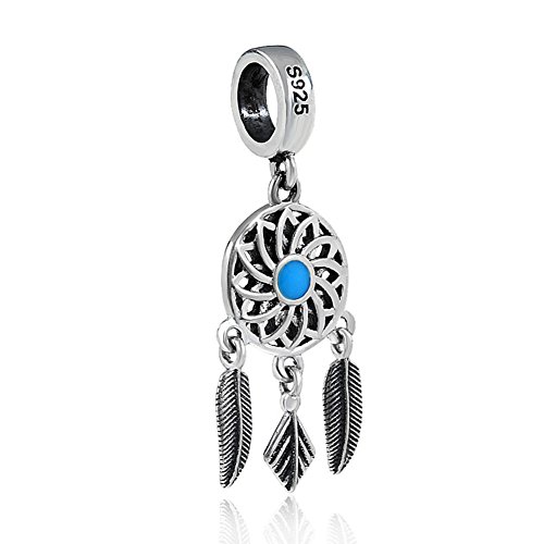 Charm acchiappasogni in argento Sterling 925 a forma di piuma d'angelo con ali di angelo, per braccialetti Pandora (B)