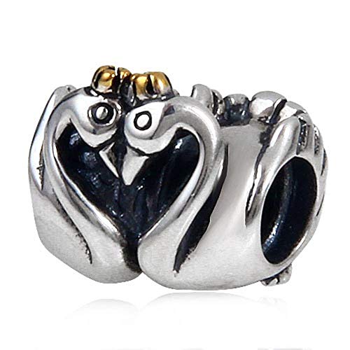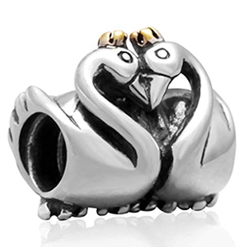 Charm in argento Sterling 925 con ciondolo a forma di cigno con animali in cristallo, per braccialetti Pandora (A)
