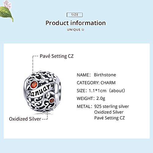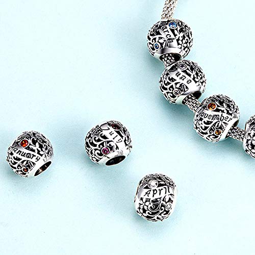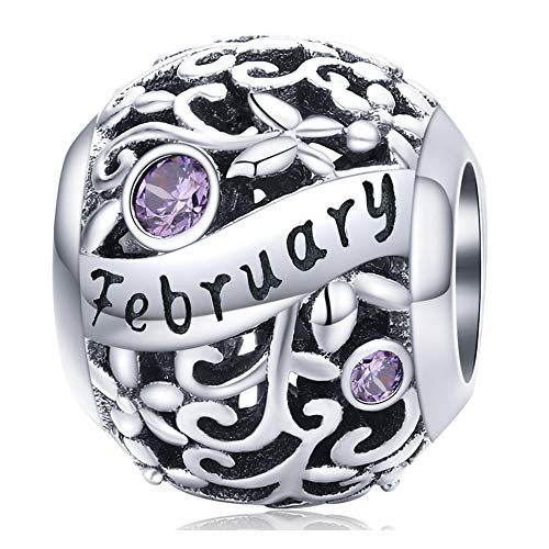 Charm in Argento Sterling 925 Compatibile con Braccialetti Pandora, Bead Charm per donne-Birthstone Febbraio