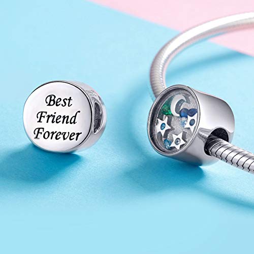 Charm in argento Sterling 925, compatibile con braccialetti Pandora, collana luminosa con luna e stella, perline rotonde