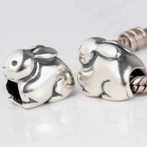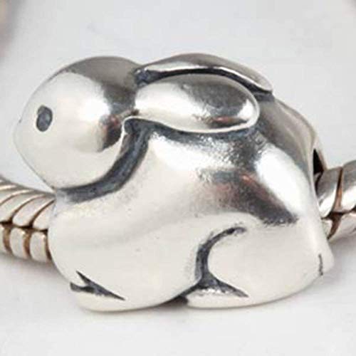 Charm in argento Sterling 925 a forma di coniglio portafortuna, per braccialetti Pandora (A)