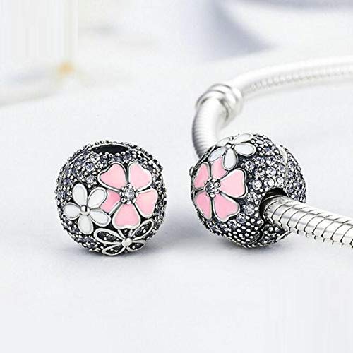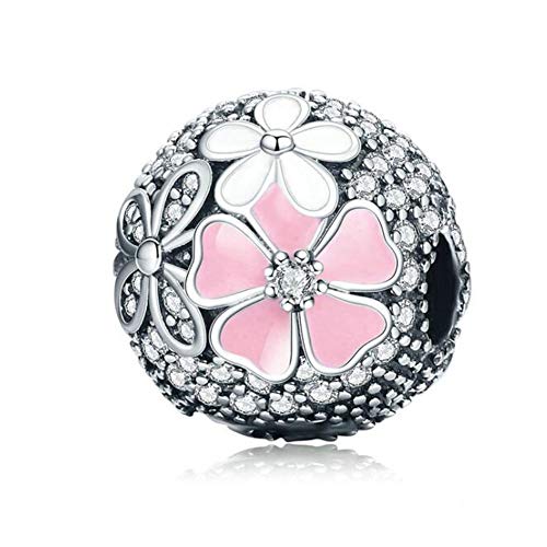 Charm in argento Sterling 925 a forma di cuore con clip per braccialetti Pandora. e Argento, colore: Ciondoli a forma di fiore rosa, cod. YS-S193