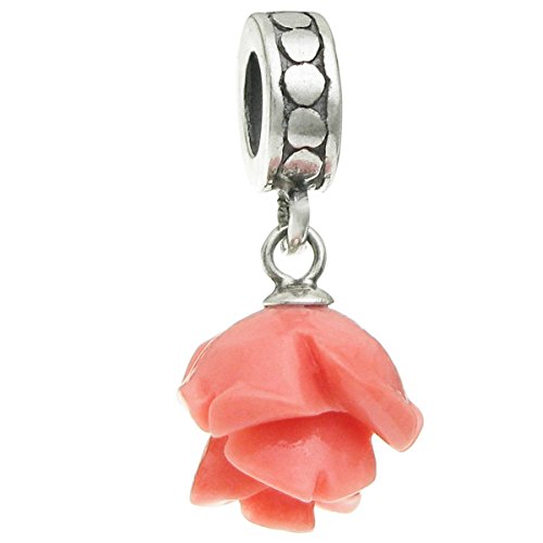 Charm in argento Sterling con rosa in corallo, argento, colore: Pink, cod. PA2332-223X1