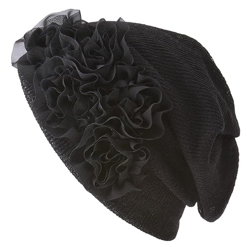 CHARM Donna Fiore Headband Scaldacollo Beanie Berretto Cappello 3 Vie Estate Inverno Nero