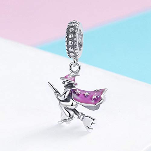 Charm Donna,Pandora Strega Magica Charm ciondoli Halloween placcati argento bead smalto viola perlina adatta per accessori braccialetto regalo Gioielli