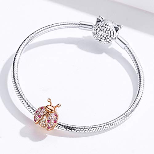 Charm a forma di coccinella, in argento sterling 925, argento placcato oro rosa, con zirconi cubici, adatto per braccialetti Pandora e collane fai da te
