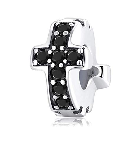 Charm a forma di croce con onice o zirconi in argento 925/1000 e Argento Sterling, colore: onice, cod. Charms Croix Perle
