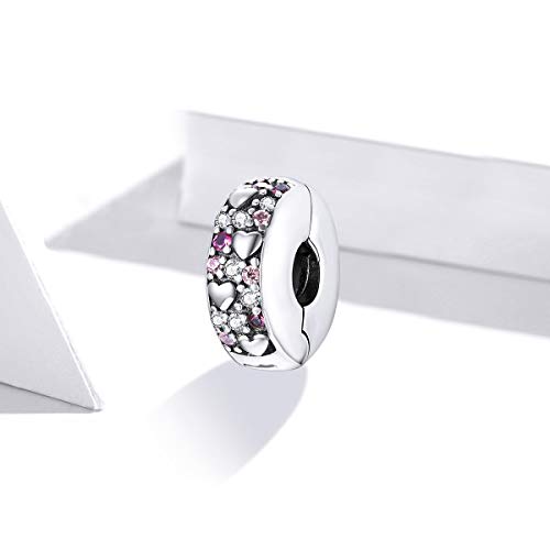 Charm a forma di cuore, in argento, con clip d'amore, con chiusura a forma di cuore, compatibile con braccialetti Pandora, Tutti