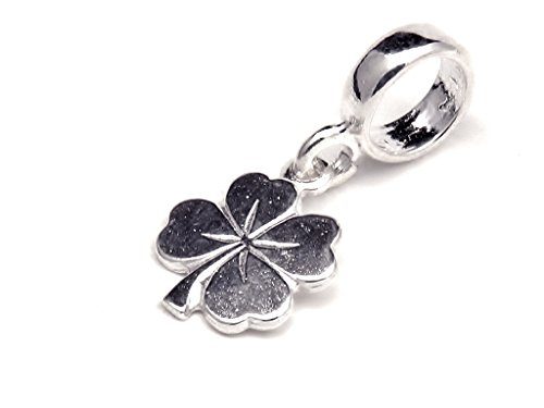 Charm a forma di trifoglio compatibile con bracciali Pandora, in vero argento 925