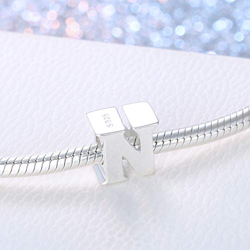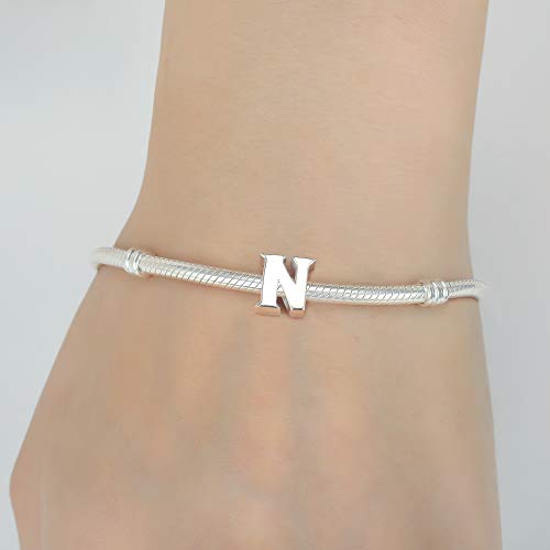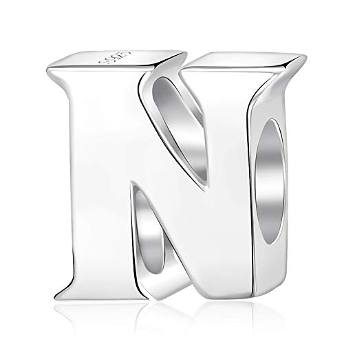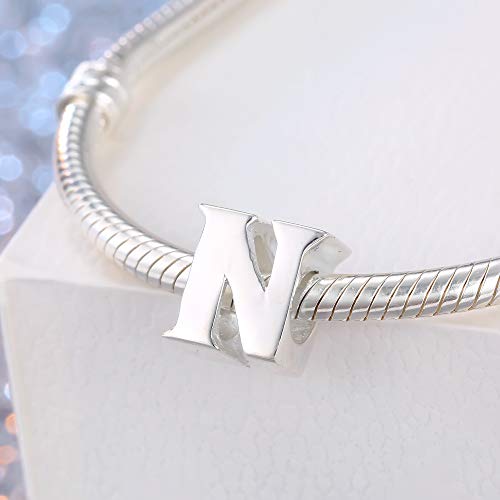 Charm con lettera dell'alfabeto, A, in vero argento Sterling adatti per braccialetti Pandora Letter N