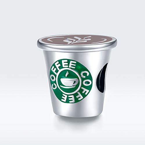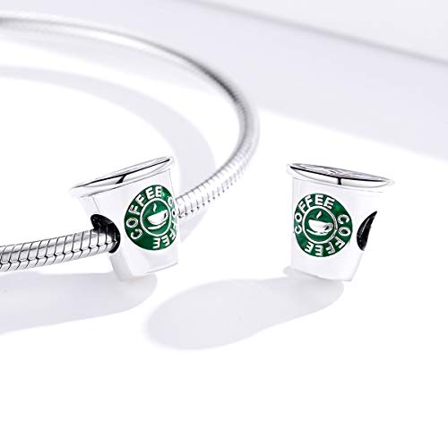 Charm perline in argento Sterling 925 con ciondolo a forma di tazza di caffè, smaltato, con cristalli e zirconi per braccialetti Pandora, Smalto Cristallo