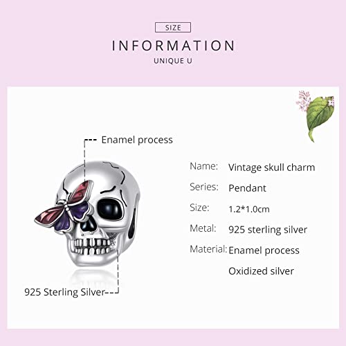 Charms teschio per braccialetti Pandora-farfalla gioielli perline Charm in argento sterling- Halloween giorno regalo per le donne ragazze mamma figlia