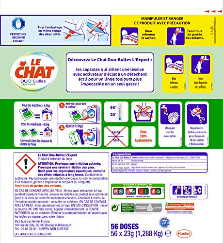 Formato 112 lavaggi: il gatto L'Expert Duo-Bulles Detersivo in cialda (2 x 56 dose), Detersivo per un bucato pulito e fresco