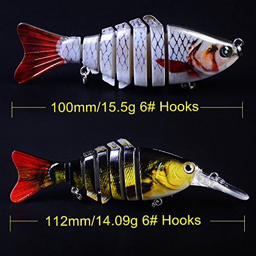 CHAWHO 6 pc Realistico Multi-snodato Luccio Esca Multi Segmento Crankbait Swimbait Duro Esche Artificiali per Esche Artificiali Wobblers ad Affondamento Lento Hard Bionic Bait #3
