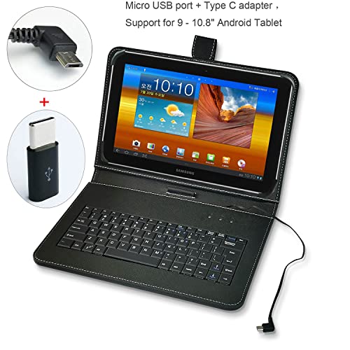 Tastiera universale custodia per 9 - 10.1 pollici tablet,micro porta + adattatore di tipo C,Custodia con QWERTY Versione tastiera
