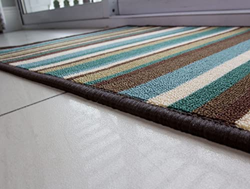 Cheap Teal, tappetino Luna, blu a strisce, zerbino, antiscivolo, lavabile in lavatrice, in nylon, 5 misure, Multi, 50 x 80 cm (1'8 "x 2'7")