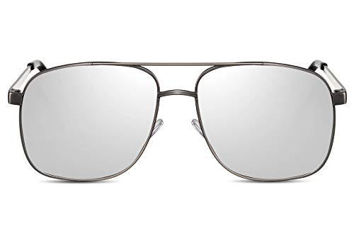 Cheapass Occhiali da Sole Pilota Occhiali Metallici da Macho con una Montatura a Colore Nichel e Lenti a Specchio Argento da Uomo UV400 Protetti
