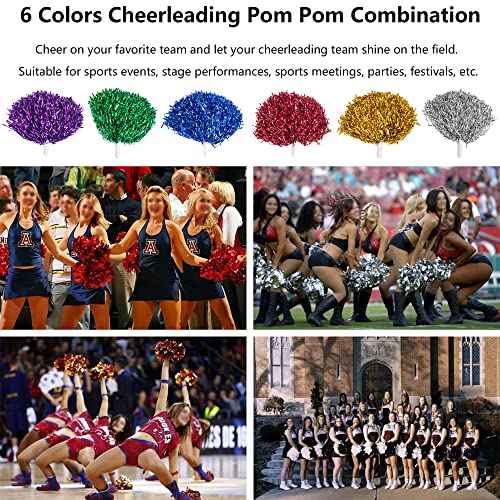 Cheer Leader Poms Pom Brillante Pallina Di Applauso Metallico Tifo Di Squadra Pompon Farben Fiori a Mano Pompon Spirito Tifo Pom Colori Confezione 6 Accessori Squadra Di Giochi Sportivi (6 colori)