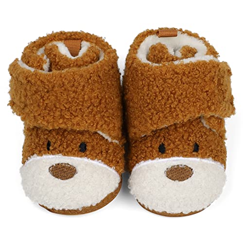 Cheerful Mario Pantofole Comodi in Pile per Neonato Neonata Invernali Calde Scarpe Primi Passi per Bimbo Bimba Suola Aantiscivolo Marrone B 12-18 Mesi