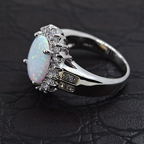 Cheerslife White Fire Opal Ring Women Fashion Jewelry 18K White Gold Silver Filled Diamond Gift Size O