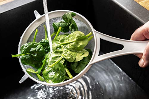 Da una vasta gamma di utensili da cucina di Chef Aid.Ideale per un varietà di compiti come Come risciacquo di cereali e fagioli, frutta e verdura.Dispone di un corpo in plastica con rete in nylon. Comodo manico che fornisce una presa sicura. Disponibile in colore bianco. Diametro colino 18 cm