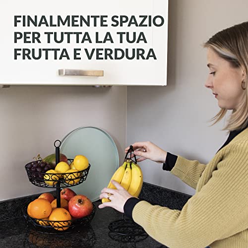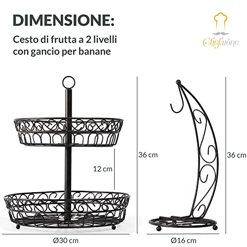 Chefarone Alzata per frutta e banana - Cestino per frutta nero - Ciotola in metallo con supporto per molte banane - Set decorativo - Nero