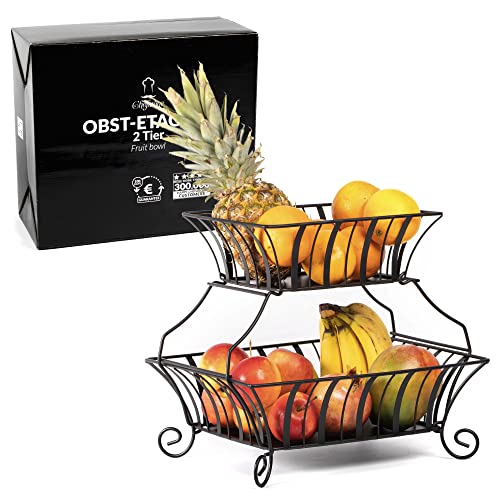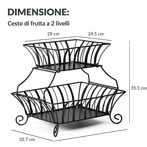 Chefarone Alzata per frutta e verdura, in metallo, a due ripiani, per frutta e verdura, 38,5 x 32,7 x 35,5 cm, colore: nero