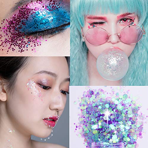 Chefic Glitter Sequin 12 Pezzi, Chunky Make Up Glitter Viso Unghie Glitter Capelli Glitter, Colori Misti Festival Glitter Corpo Glitter Polvere Pentagramma Esagonale per Festa Masquerade