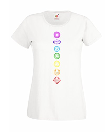 CHEIDEASTORE T-Shirt Maglietta 7 Chakra Yoga by MammAlternatiVEG Donna (Bianco, Large)