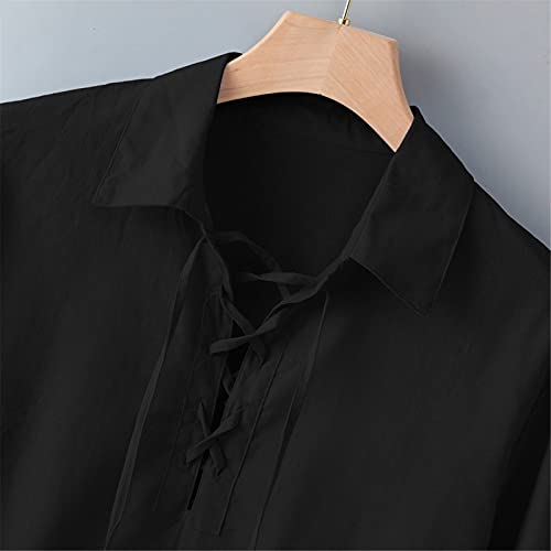 Chejarity Camicia da uomo in lino in cotone medievale, con lacci, vestibilità larga, a maniche lunghe, per il tempo libero, Henley Shirts, Nero, M