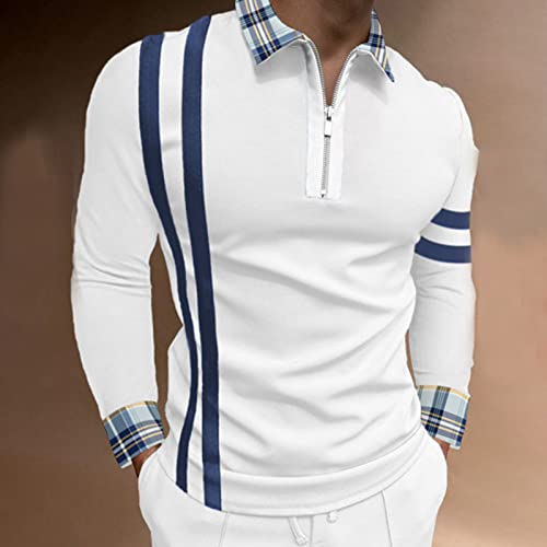 Chejarity Polo classica da uomo, a maniche lunghe, per autunno e inverno, con collo reversibile, a maniche lunghe, da golf, vestibilità regolare, D-blu, XXL