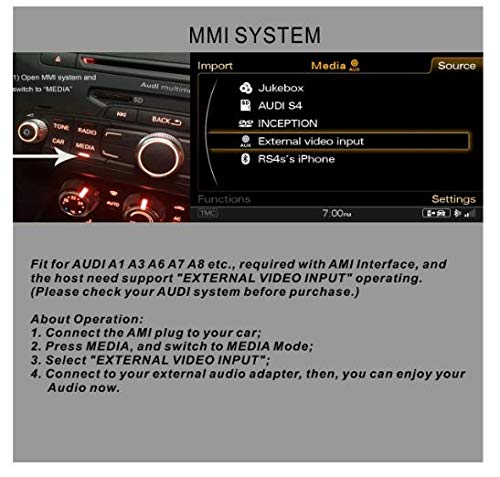 Il cavo adattatore RCA di Chelink è adatto per Audi A1, A3, A6, A7, A8, ecc., richiesto con interfaccia AMI, e necessita di un supporto operativo per input video esterni. Si prega di controllare il vostro sistema Audi prima dell'acquisto.