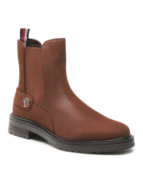 Tommy Hilfiger Chelsea Th Coin Flat Boot FW0FW06742 Marrone