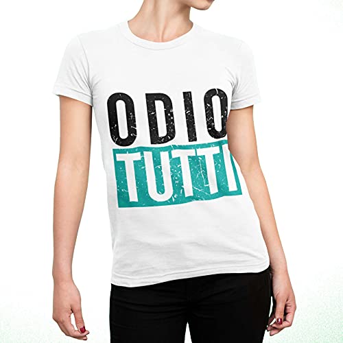 CHEMAGLIETTE! T-Shirt Divertente Donna Maglia con Stampa Frase Arrabbiata Ironica Odio Tutti Tuned, Colore: Bianco, Taglia: XL