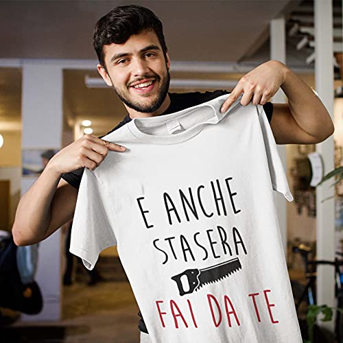CHEMAGLIETTE! T-Shirt Divertente Uomo Maglietta con Stampa Frase Ironica Stasera Fai da Te Tuned, Colore: Bianco, Taglia: XL