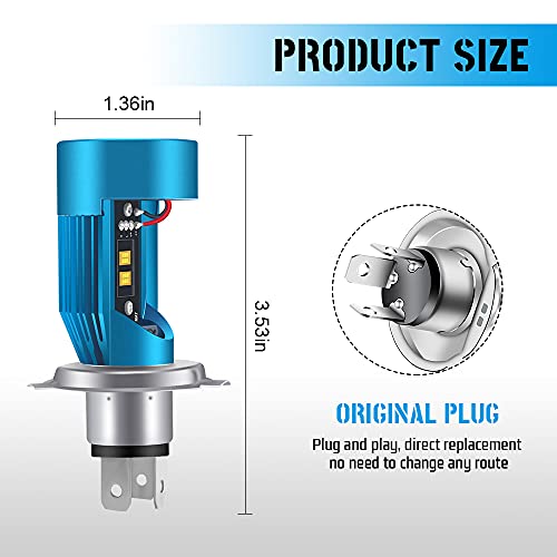 Maggiore luminosità:h4 led moto utilizzo del chip 3570 di alta qualità per produrre una luce bianca di 6000k di 2600 lumen, 200% più luminosa delle lampade alogene standard, sostituzione perfetta delle lampadine originali, fascio di luce focalizzato perfetto e distanza di illuminazione più lunga, nessun punto nero nell'illuminazione esperienza di guida in moto più sicura per te.